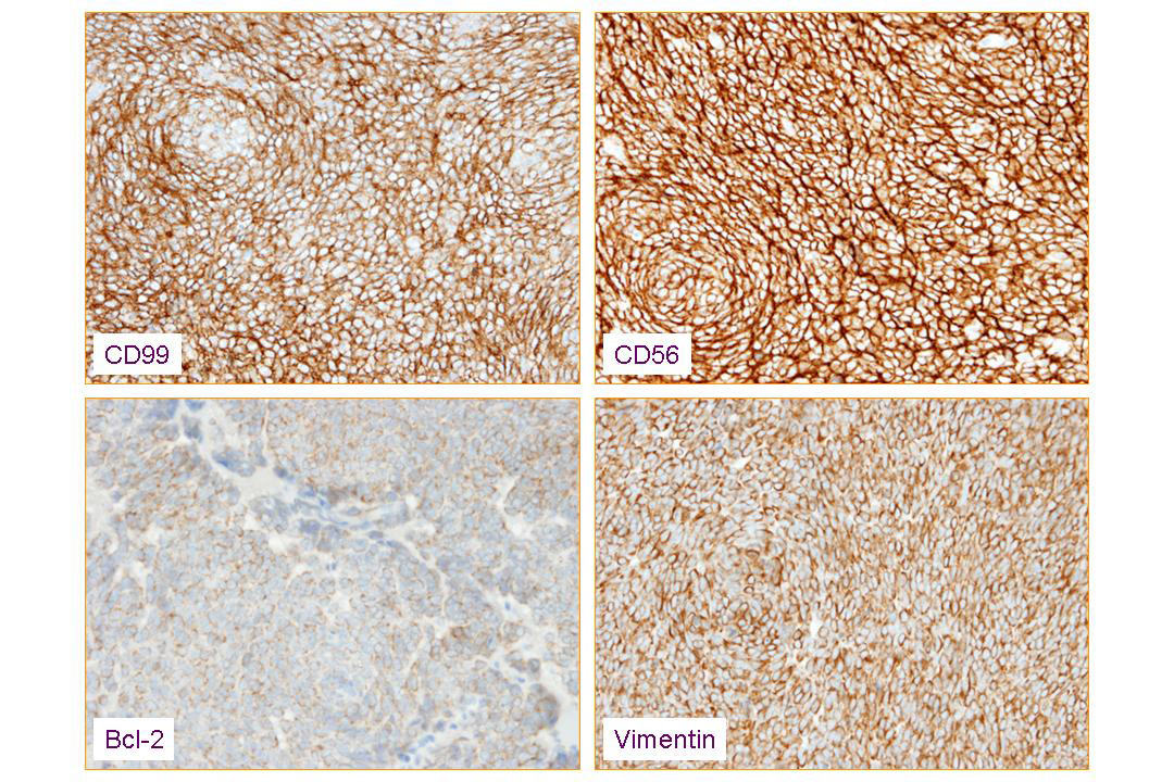 腫瘍細胞はCD99, CD56, bcl-2, vimentinが陽性を示した. |